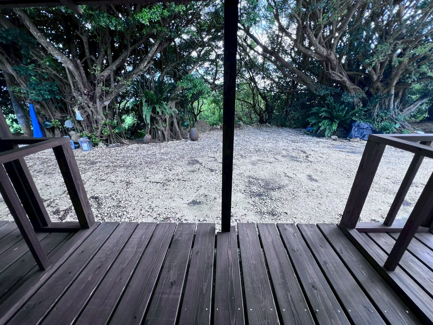 与論島の静かな集落に佇む宿「HOSTEL あざみ庵 よろん」。ガジュマルの木陰と畳の温もりに包まれ、ゆったりと島時間を過ごせます。キッチンや洗濯機も備え、長期滞在やひとり旅にも最適な癒しの宿です。
